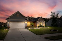 One level living at its finest! Tangerly Oak model in the Award-winning 55+ community of Carolina Orchards. 3BR 3BA. 2 Primary suites. Open concept living is centered around the kitchen. Living room has stone fireplace. Sunroom + enclosed porch + patio all overlook a VERY private back yard. Common space behind and to side of home. Laundry room with pass-through to the Primary walk-in closet. LARGE 2 car garage w/ additional tandem golfcart garage + the 4ft garage extension make this a handyman/hobbyist dream. Lawn maintenance included. In this community, residents have access to a range of amenities tailored to an active & social lifestyle. This includes a clubhouse, fitness center, indoor & outdoor swimming pools, 4 tennis cts, 8 pickleball cts, bocce ball, dog park, playground, & various social activities to enjoy with like-minded neighbors. Community has on-site Lifestyle Coordinator! You don't want to miss this beautiful home in an amazing community!