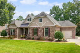 From the moment you pull up, this brick and stone beauty feels like home. Sitting on a spacious .3-acre lot with a three-car garage, the curb appeal is undeniable—but it’s the welcoming arches, volume ceilings, and easy flow inside that truly set the tone. Designed with mostly one-level living in mind, the home feels open, light-filled, and effortlessly comfortable. The heart of the home is the kitchen—a place where everyone naturally gathers. A large island anchors the space, surrounded by freshly painted cabinets, granite countertops, stainless steel appliances, a walk-in pantry, and a beautiful herringbone subway tile backsplash. It opens seamlessly to the dining area and great room, where newly added hardwood floors and updated light fixtures create a warm, modern feel that’s perfect for everyday living or hosting friends. Just off the living area, step onto the screened-in porch and take in the peaceful view of trees behind the home—your own private retreat. Two outdoor patios offer plenty of space for grilling & dining. The main level offers thoughtful flexibility with a front flex space, two generously sized secondary bedrooms, and a spacious primary suite w/ trey ceiling is tucked away for privacy. The primary bath feels like a spa escape with dual sinks, a tiled shower, soaking tub, and a large walk-in closet. If you work from home, you’ll appreciate the private office quietly positioned at the back of the house. A convenient mudroom off the garage keeps everything organized and clutter-free. Upstairs, you’ll find a large bonus room with a closet, a fourth bedroom, and a full bath—ideal for guests, hobbies, or movie nights—plus walk-in attic storage for all the extras. And the location? It checks every box. Located in sought-after Barber Rock with fabulous community amenities, you’ll enjoy South Carolina’s low taxes while being just minutes from the shopping, dining, and conveniences of Ballantyne. This is the kind of home where life unfolds easily—and where memories are waiting to be made.